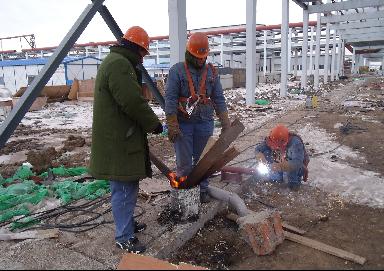 而今的通遼已進入冬季,所下的雪,一時很難溶化,刺骨的寒風,使每位來自南方的人員,無法適應這一切。為了實現目標,大家都在默默地承受著,管廊上余留的積雪,被風一吹,成了溶不化的冰塊,給現場施工增加了很大的難度,安全上也存在著極大的隱患。