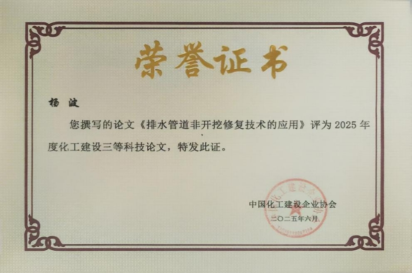 近日,中南公司自主研發(fā)的“大型金屬管道管口校正器及管口校正方法”獲得國(guó)家發(fā)明專利證書(shū),撰寫(xiě)的論文《排水管道非開(kāi)挖修復(fù)技術(shù)的應(yīng)用》獲評(píng)2025年度化工建設(shè)三等科技論文。兩項(xiàng)成果的落地,標(biāo)志著中南公司在施工技術(shù)創(chuàng)新領(lǐng)域邁上新臺(tái)階,為解決工程建設(shè)中的實(shí)際難題提供了更高效、更優(yōu)質(zhì)的技術(shù)方案。