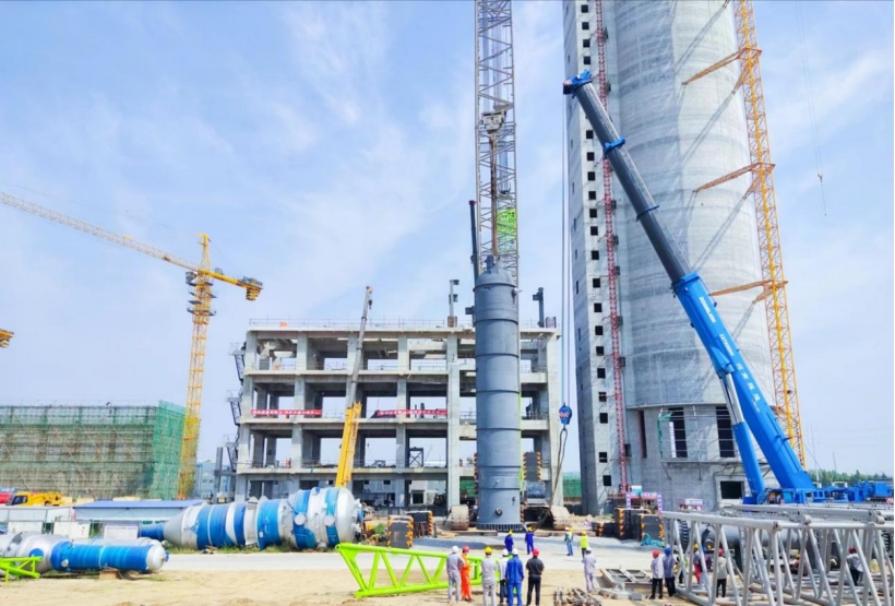 華北公司河南晉開延化項(xiàng)目大型設(shè)備吊裝就位
