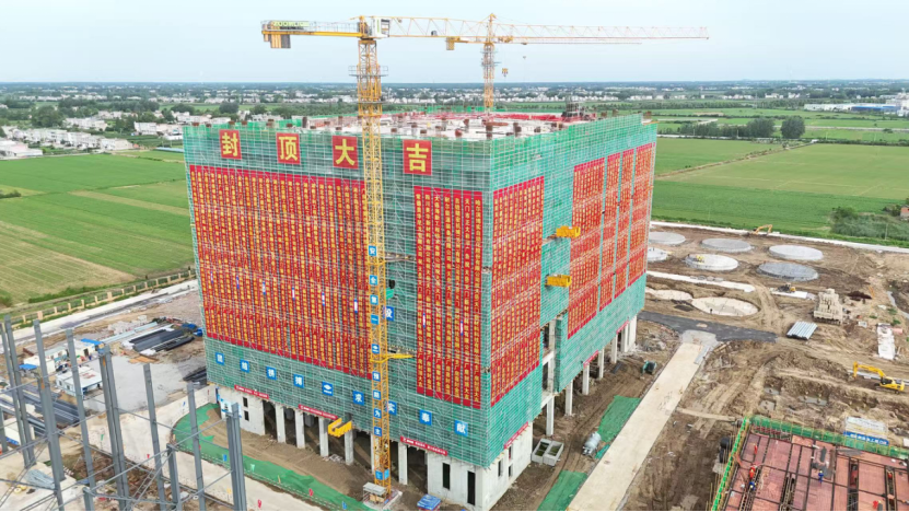 該聚合廠房主體7層局部9層,建筑高度65.7米,框架剪力墻結(jié)構,占地面積4085.64㎡,建筑面積30693.09㎡。自2024年12月12日基礎動土開挖以來,項目部采用標準化作業(yè)與先進工藝技術,克服高支模危大工程等施工難點,以“11.5天/層”的施工速度推進建設,最終提前4天完成封頂任務,刷新同類化工廠房建設效率紀錄,獲業(yè)主方高度認可。